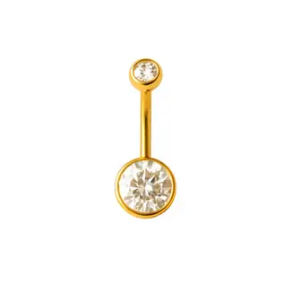 Ophelia est un piercing de nombril élégant et lumineux, composé de deux zircons blancs sertis avec précision. Sa finition offre un éclat pur et intemporel, parfait pour sublimer la peau avec finesse.